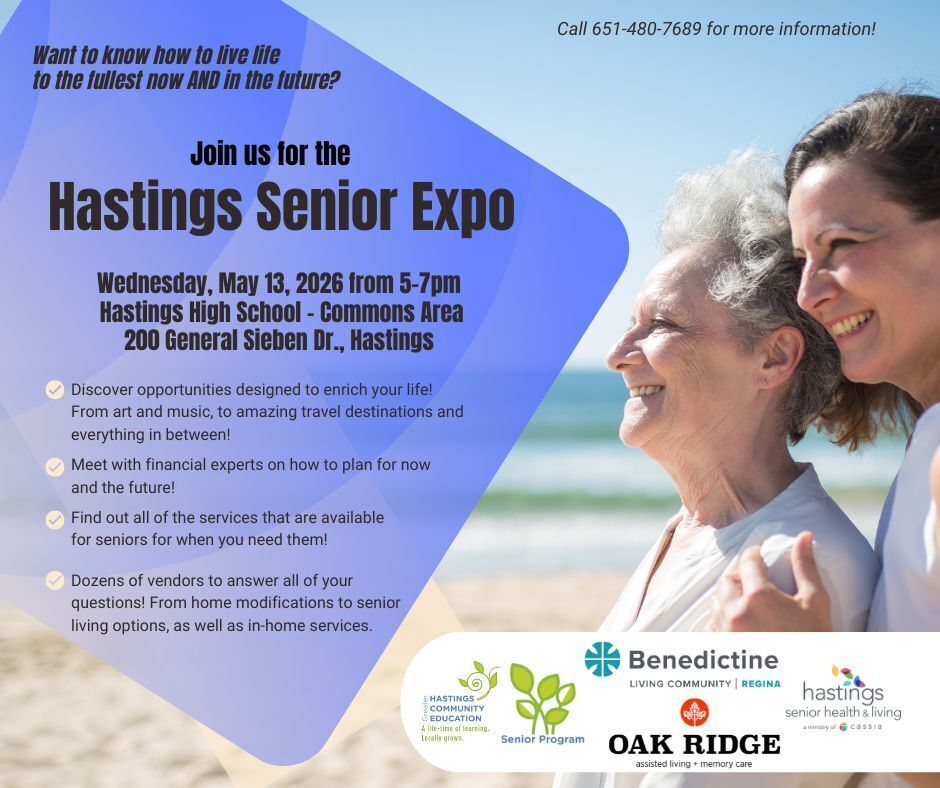 This free event is sponsored by Benedictine Living Community - Regina, Hastings Senior Health and Living, Hastings Community Education, and Oak Ridge.